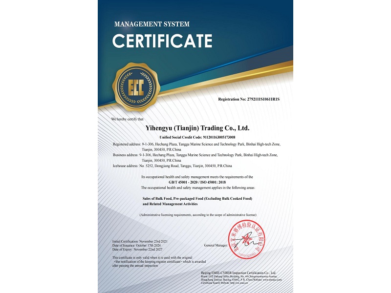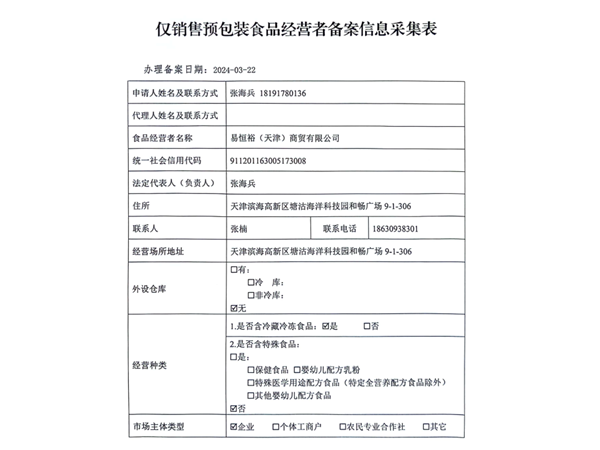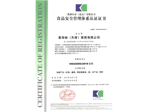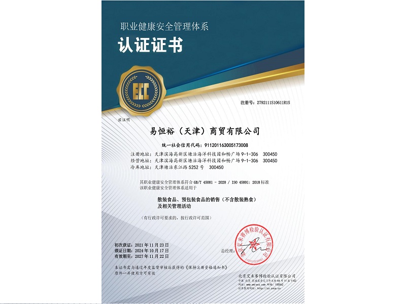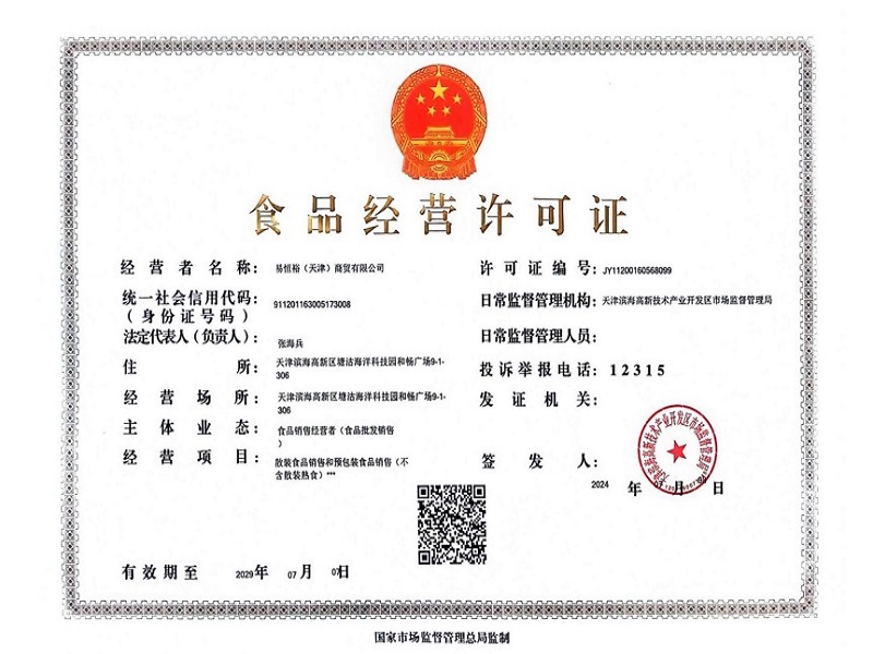 为了给客户多一份安心保障,由中国人民财产保险股份有限公司承保易恒裕(天津)商贸有限公司食品安全责任险,保额100万元。另外公司每年将根据配送量进行投保额的增加。