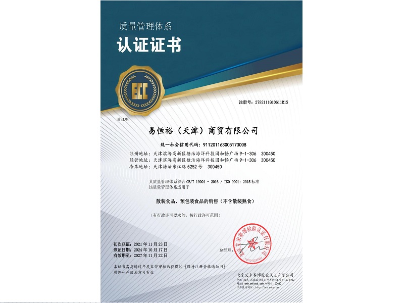 易恒裕(天津)商贸有限公司,成立于2014年7月,公司主要致力于为各类学校、机关、军队、企事业单位提供安全、快捷的一站式配送服务,确保食品从源头到餐桌,真正实现绿色生态、品质健康。在食品品质的严格要求下本着“做放心食品、创优质服务”的理念努力经营,使公司的业务蒸蒸日上受到越来越广泛客户群的信赖和认可!